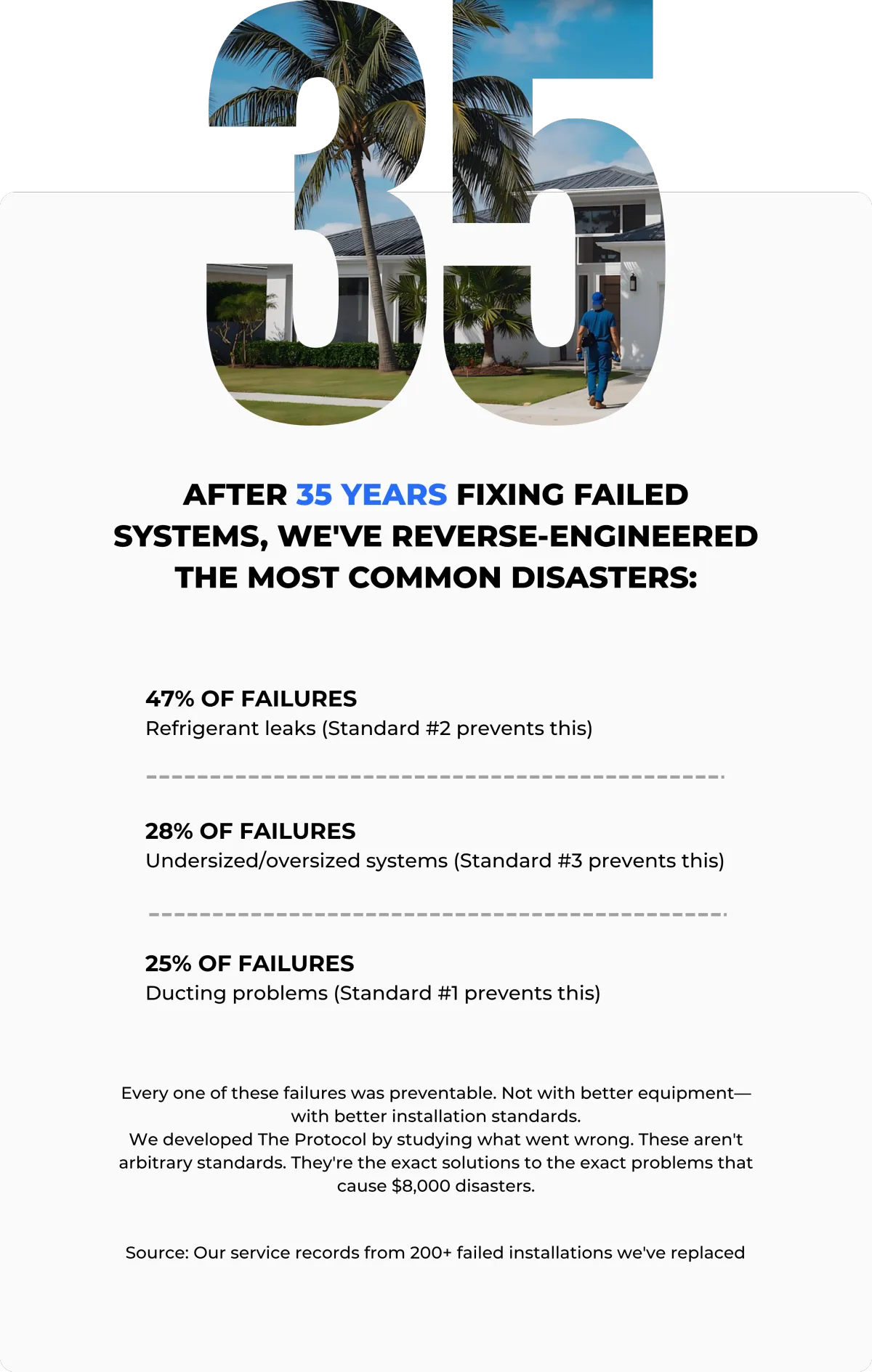 OVER 35 YEARS INSTALLING DUCTED AIR CONDITIONING, we've met hundreds of families in your exact position and we've met dozens more who chose the "affordable" route — only to call us 2-4 years later, frustrated and facing that exact $12000+ decision.