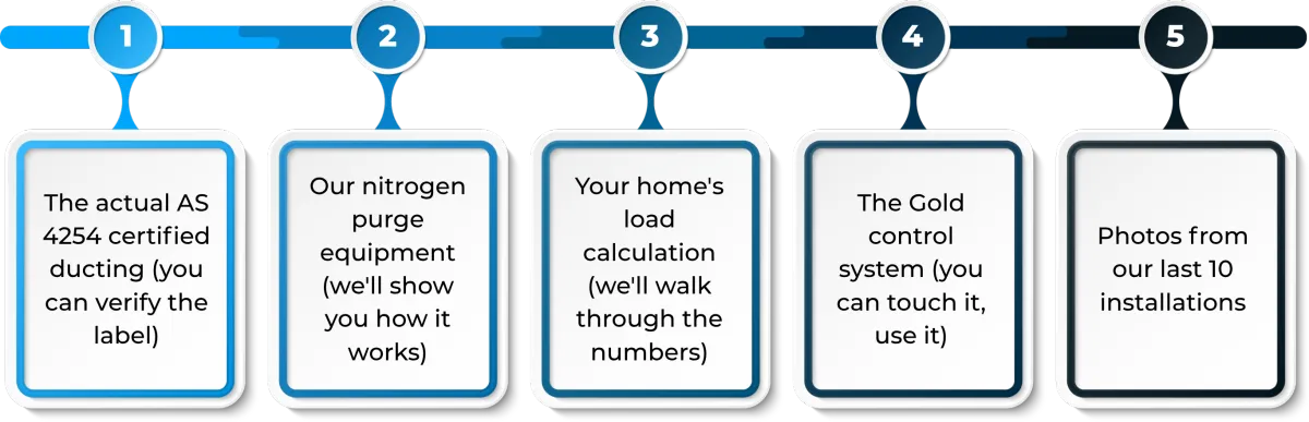 We're betting that when you see The Protocol in action—when you hold the AS 4254 certified ducting in your hands, see the nitrogen purge equipment, watch us walk through your home's load calculation—you'll understand why installation quality matters more than price.