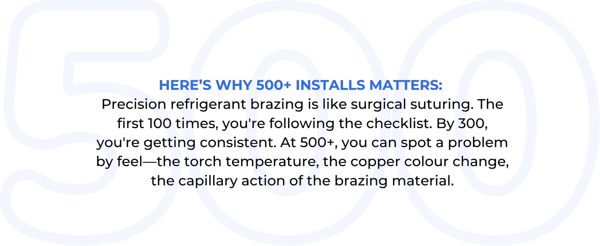 He's now one of our senior installers. He's done 300+ ducted-only installs with us. And he's the first to tell customers: "Don't hire generalists. I was one. I know what corners get cut."